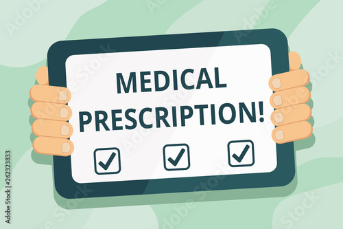 Handwriting text Medical Prescription. Conceptual photo details of the medicine or drugs that someone needs Color Tablet Smartphone with Blank Screen Handheld from the Back of Gadget