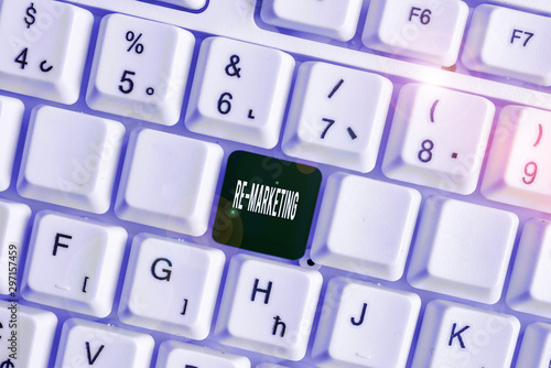 Handwriting text Re Marketing. Conceptual photo Strategy to reach potential customers in your website White pc keyboard with empty note paper above white background key copy space