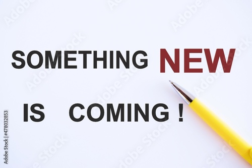 Handwriting text Something new is coming. Concept meaning something is going to happen in really short time of period, business concept, Top view.