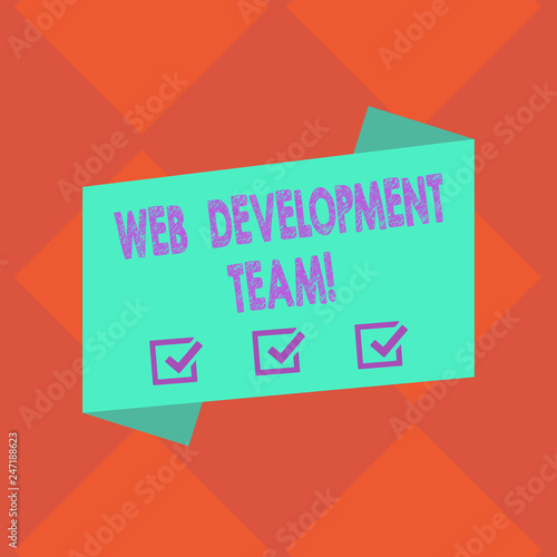 Handwriting text Web Development Team. Concept meaning a team of developers working towards an end goal Blank Color Folded Banner Strip Flat Style photo for Announcement Poster