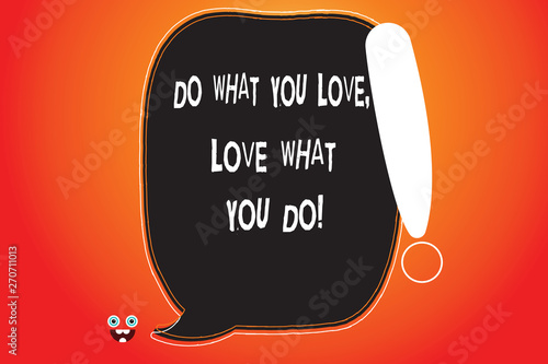 Handwriting text writing Do What You Love Love What You Do. Concept meaning Make things with positive attitude Blank Color Speech Bubble Outlined with Exclamation Point Monster Face icon
