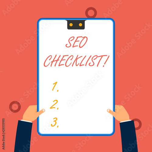 Handwriting text writing Seo Checklist. Conceptual photo list of items required to optimize the search engine