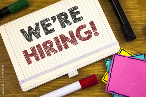Handwriting text writing We Are Hiring Motivational Call. Concept meaning Talent Hunting Job Wanted Recruitment