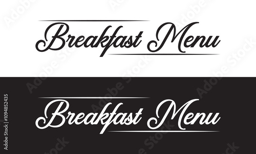 Handwritten brush calligraphy Breakfast menu. Vector illustration. isolated on white and black background. EPS 10