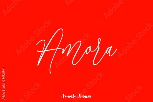 Handwritten Cursive Text Female Name "Amora" On Red Background