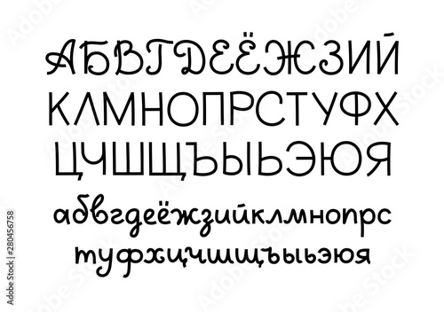 Handwritten font, Russian, thin, black, vector. Black Russian alphabet on a white field. Uppercase and lowercase letters.Thin felt-tip pen. Imitation.
