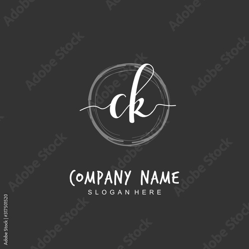 Handwritten initial letter C K CK for identity and logo. Vector logo template with handwriting and signature style.