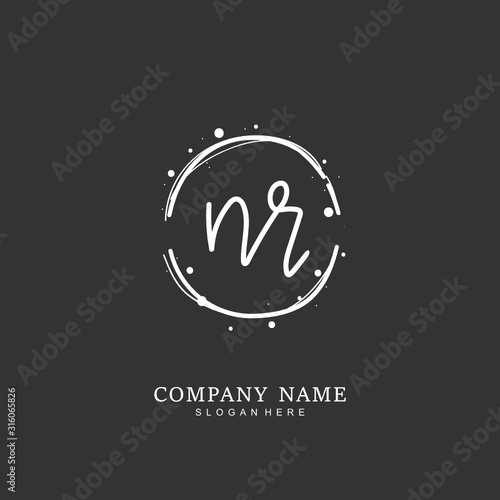 Handwritten initial letter N R NR for identity and logo. Vector logo template with handwriting and signature style.