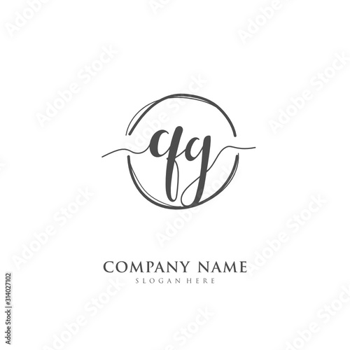 Handwritten initial letter Q G QG for identity and logo. Vector logo template with handwriting and signature style.