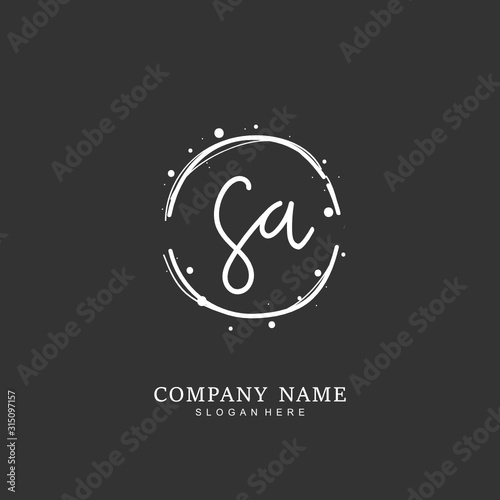 Handwritten initial letter S A SA for identity and logo. Vector logo template with handwriting and signature style.