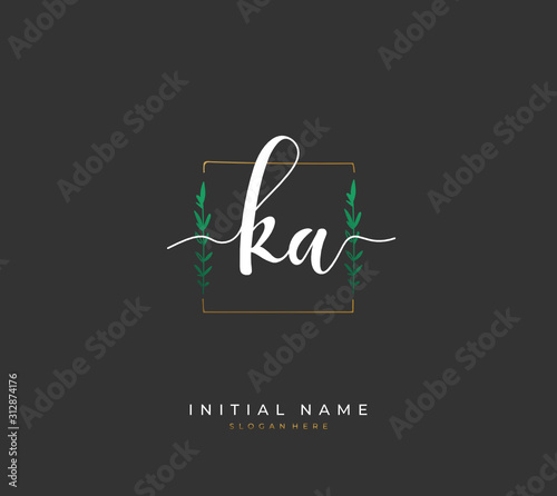 Handwritten letter K A KA for identity and logo. Vector logo template with handwriting and signature style.