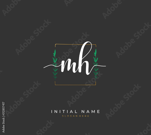 Handwritten letter M H MH for identity and logo. Vector logo template with handwriting and signature style.