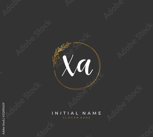 Handwritten letter X A XA for identity and logo. Vector logo template with handwriting and signature style.