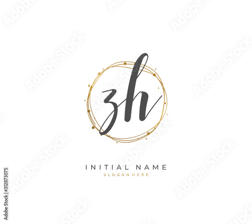 Handwritten letter Z H ZH for identity and logo. Vector logo template with handwriting and signature style.