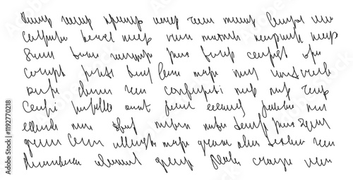 Handwritten scribble ink letter. Freehand text note. Unreadable doodle write by pencil isolated on white background. Illegible cursive script message. Vector hand drawn illustration.