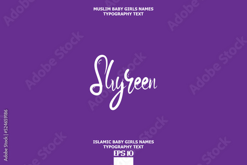 Handwritten Text of Islamic Female Name Shyreen. on Purple Background