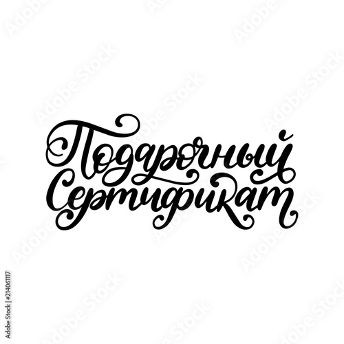 Handwritten word Gift Certificate.Translation from Russian. Vector calligraphic inscription on white background.