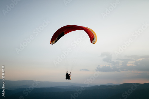 Hang glider pilot in mountains