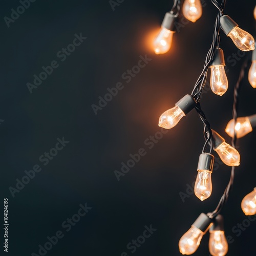 Hanging Christmas lights with a warm golden glow, dark backdrop perfect for inserting festive greetings festive light, holiday theme