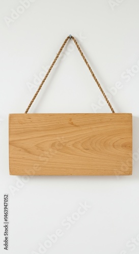 Hanging Empty Wooden Sign on White Wall with Neutral Background