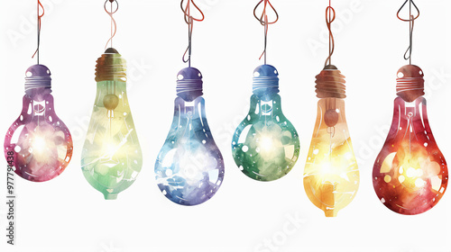 Hanging light bulbs. Light bulbs on white background