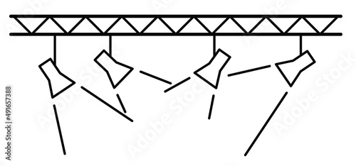 Hanging photostudio lamp. Spotlight Hanging on ( ceiling ) rail. Cartoon lamps. Spotlight concept. Vector photo studio flashes. Light bulb icon or symbol. flashlight Lighting