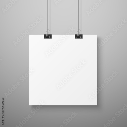 Hanging picture. Blank photo paper template for gallery realistic vector illustration