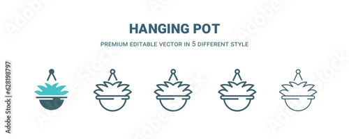 hanging pot icon in 5 different style. Outline, filled, two color, thin hanging pot icon isolated on white background. Editable vector can be used web and mobile