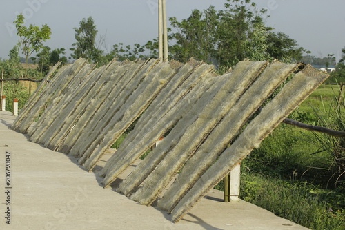 Hanoi, Vietnam,December 13, 2015: arrowroot vermicelli- a special Vietnamese noodles are being dried on bamboo fences going along the roads in Cu Da Village ( one Old village in Hanoi)