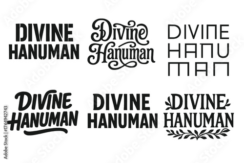 Hanuman Lettering Grid. Divine Hanuman. Set lettering. harmonious lettering variations of the same emblematic concept (Stencil-inspired urban lettering,