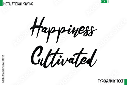 Happiness Cultivated Cursive Text Calligraphy Inspirational Slogan