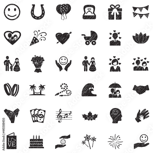 Happiness Icons. Black Scribble Design. Vector Illustration.
