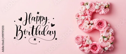 Happy 5th Birthday Floral Number Five Pink Roses Background