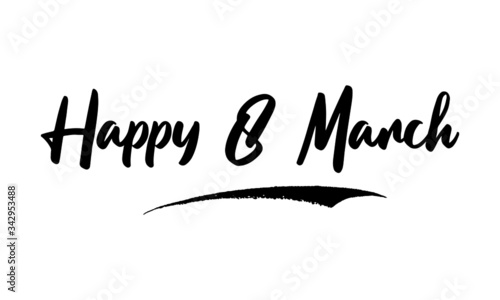 Happy 8 March Calligraphy Handwritten Lettering for Posters, Cards design, T-Shirts. Saying, Quote on White Background