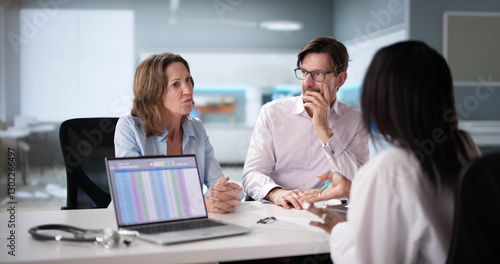 Happy African pregnant couple patient at doctor, talking about ultrasound