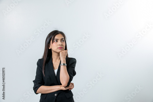 Happy Asian businesswomen Success and winning concept - happy team with raised up hands celebrating the breakthrough and achievements for working on white background