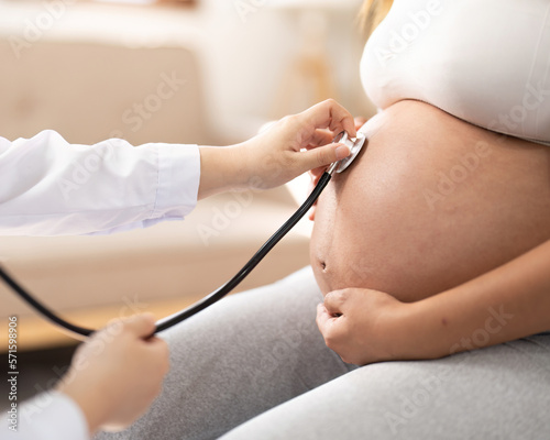 Happy Asian pregnant woman with her doctor in the examination room