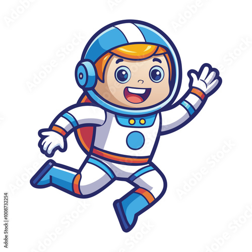 Happy Astronaut Jumping Cartoon Vector Icon Illustration.