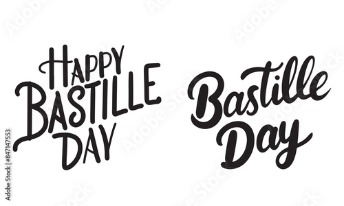 Happy Bastille Day collection text lettering. Hand drawn vector art.