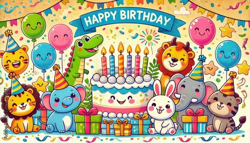 happy birthday card with balloons content created with generative AI software.
