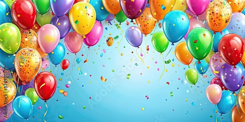 Happy birthday card with colorful balloons and confetti, happy, birthday, card, celebration, balloons, confetti, festive