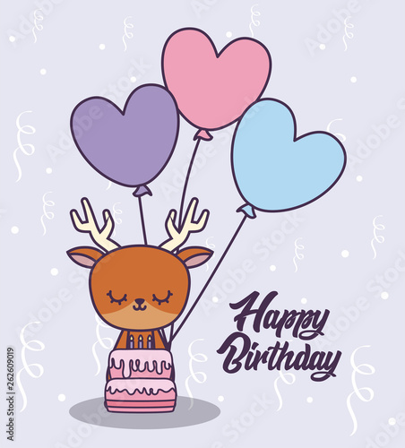 happy birthday card with cute reindeer and balloons helium