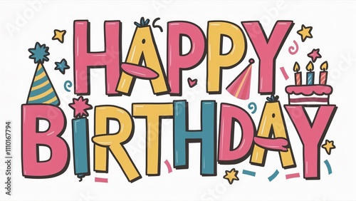 Happy Birthday! Colorful Doodle Lettering Design for Cards & Prints