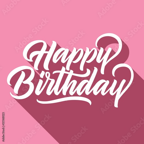 Happy birthday hand lettering with long shadow, on retro pink background. Vector illustration