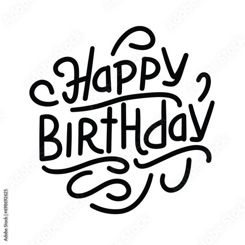 Happy Birthday inscription. Handwriting concept text banner Happy Birthday short phrase square composition. Hand drawn vector art.