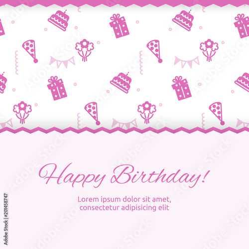 Happy Birthday poster design. Birthday party banner with cute pink pattern