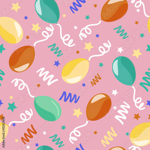 Happy Birthday Seamless Pattern with Balloons for Children Party
