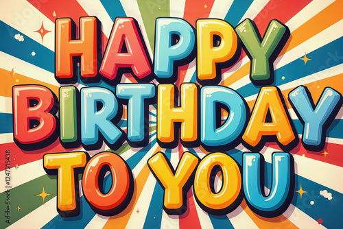 Happy Birthday to You message on a bright, colorful background with radiating lines.
