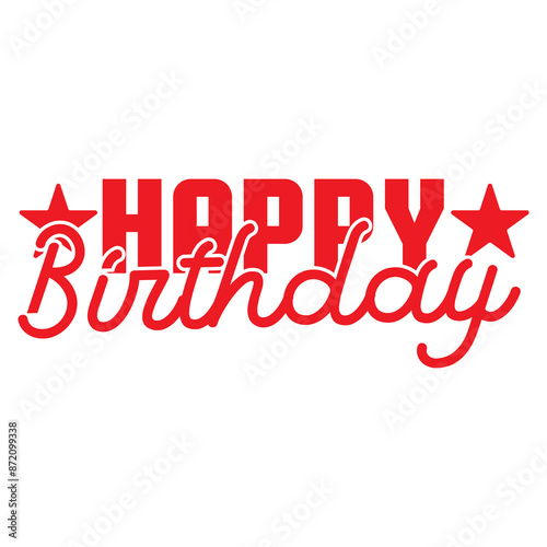 Happy Birthday typography design on plain white transparent isolated background for card, shirt, hoodie, sweatshirt, apparel, tag, mug, icon, poster or badge
