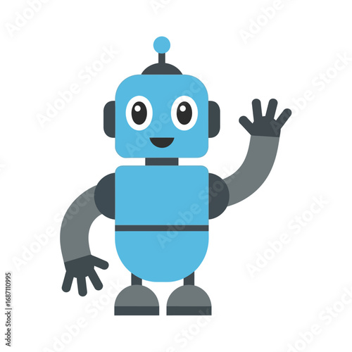 Happy Blue Robot Friendly AI Character Waving Hello in a Vector Illustration